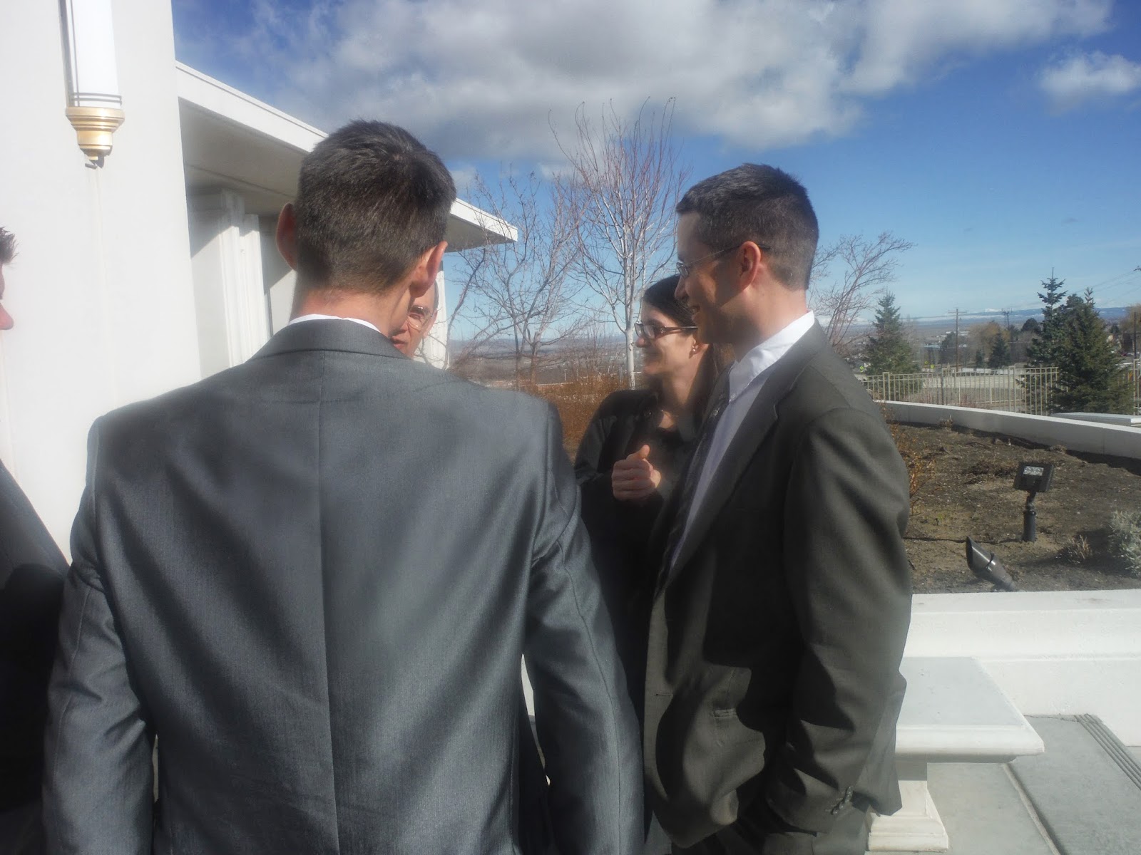 Ken came to Logan for a visit last weekend. Our nephew, Kyler got married in the Rexburg temple, so Ken drove to Logan on Friday and he and I drove to Rexburg on Saturday to attend the wedding and luncheon. It was so fun to be there. Kyler and Ashley looked so happy. I didn't get a great picture, but this is the happy couple emerging from the temple: