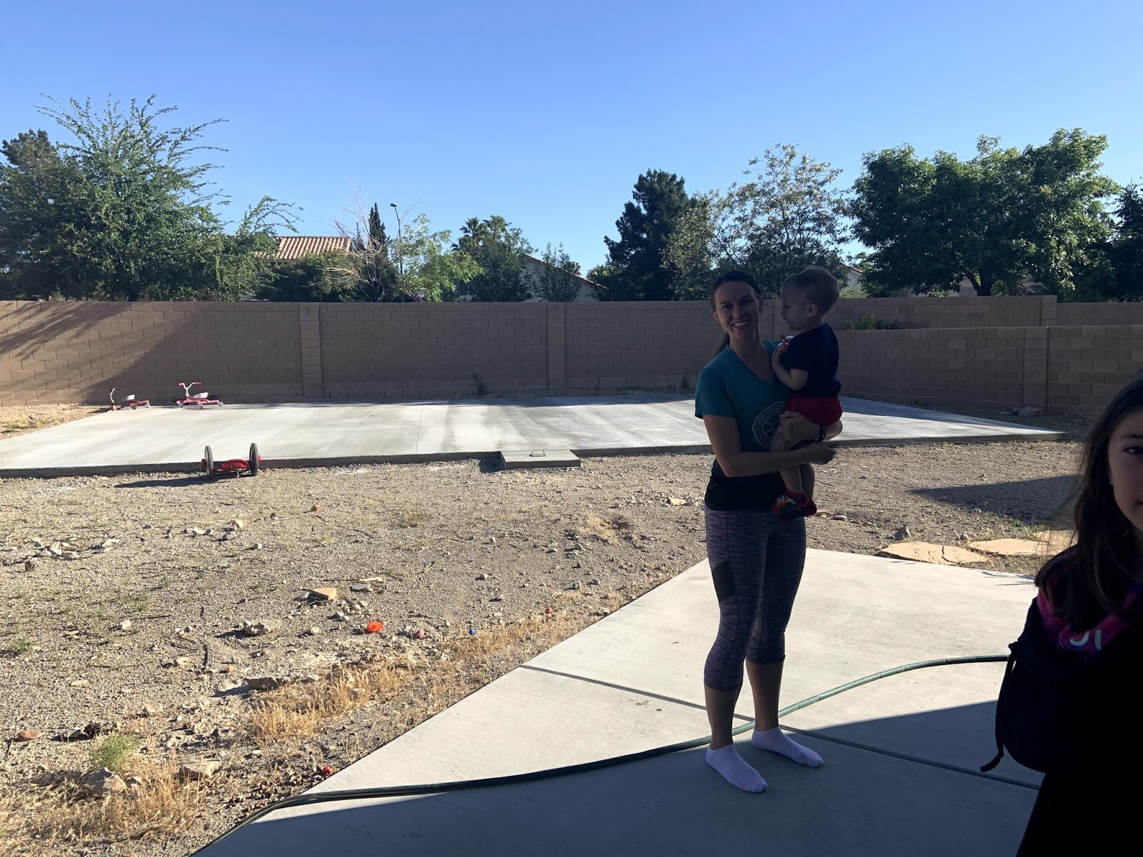 Michelle and Brian are working on their big backyard, little by little.  They just put in the concrete for a basketball court.