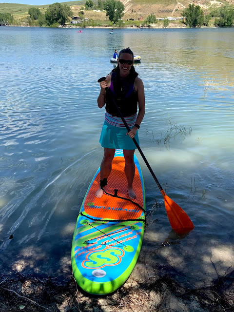 We then headed to Newton Reservoir near their home for a fun day on the reservoir.  Shonna and Blake have four kayaks and a paddle board.  Brian and Michelle have a raft and large tube.  It was such a fun, perfect day.  Everyone had a good time. (Jared had to work remotely, so he didn't come.  Brielle volunteered to stay home and tend Elisabeth.)