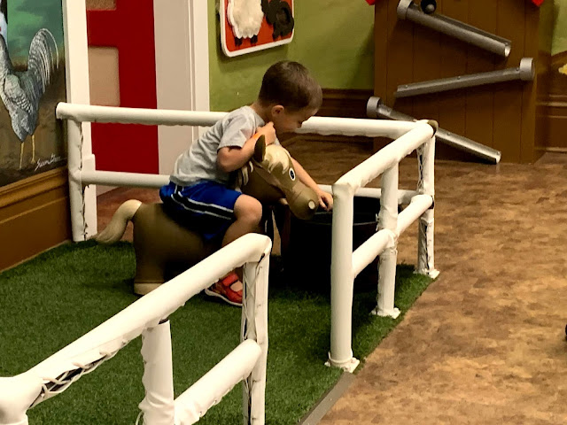 | Gabe loved this puzzle screen game in the dinosaur room. We pretty much had to peel him off of it. He is a very good puzzle-doer. |