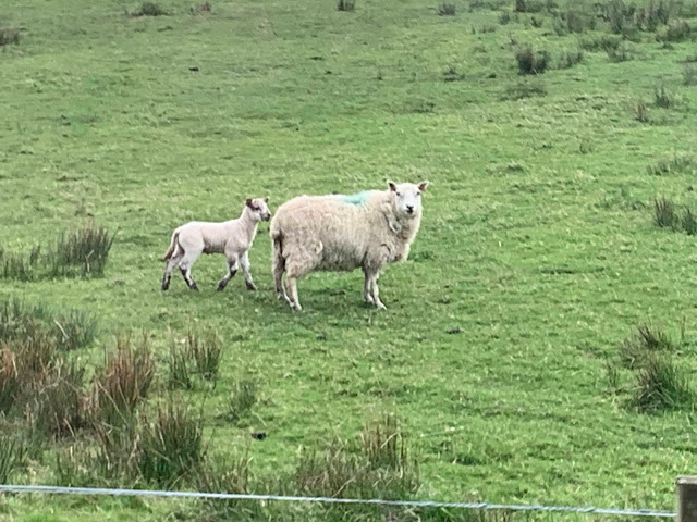 | It was so difficult to get a picture of this (this taken out the bus window), but one of the distinctive features of Scotland were their fences. The grazing fields were surrounded by mostly stone fences. Much like we see fences with barbed wire coils on top, most of theirs had spiky stones on the top. I wonder if the purpose was the same? |