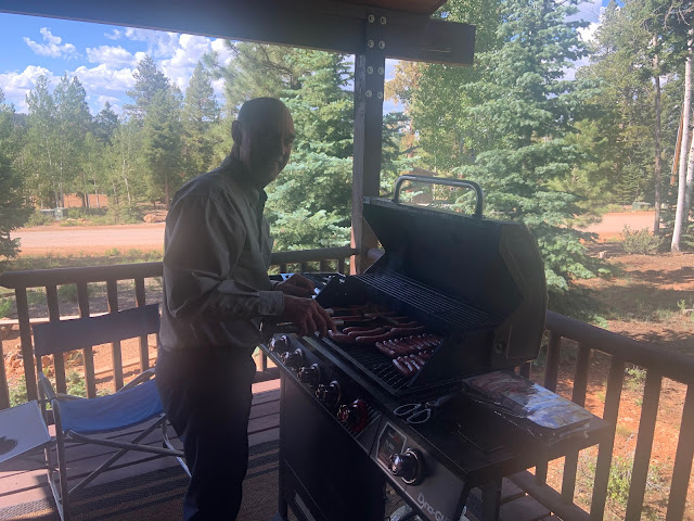 | Brian and Nathan preparing the fish they caught. I had a small piece. Delicious! |