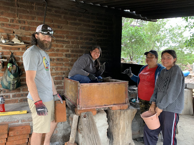 The other project was making cookstoves for families.L to R: Ty, Lupita, and the mom and daughter for whom the cookstove is being built. They both helped in the stove's construction.